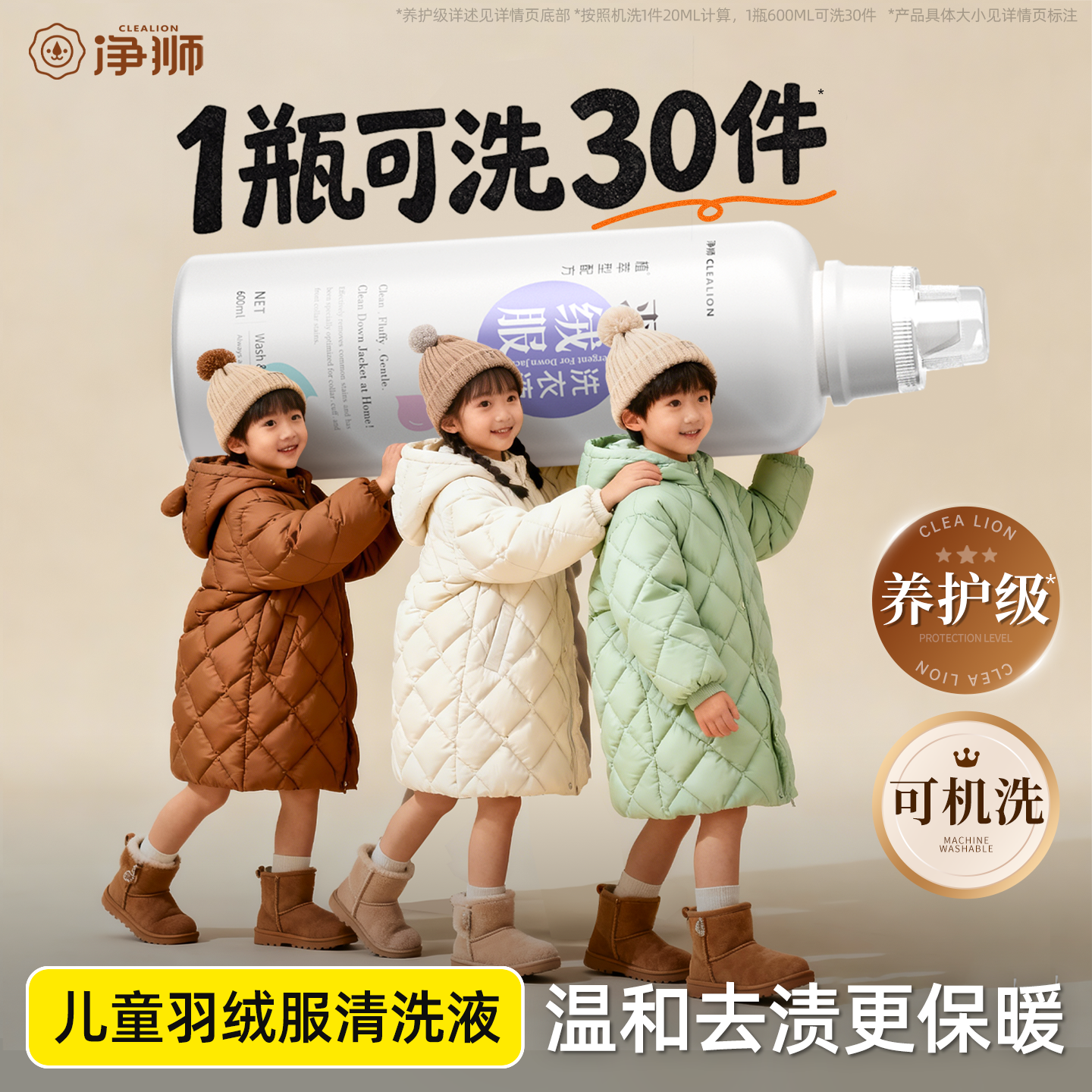 净狮儿童羽绒服专用蓬松洗衣液机洗手洗专用宝宝棉服去污渍洗涤剂