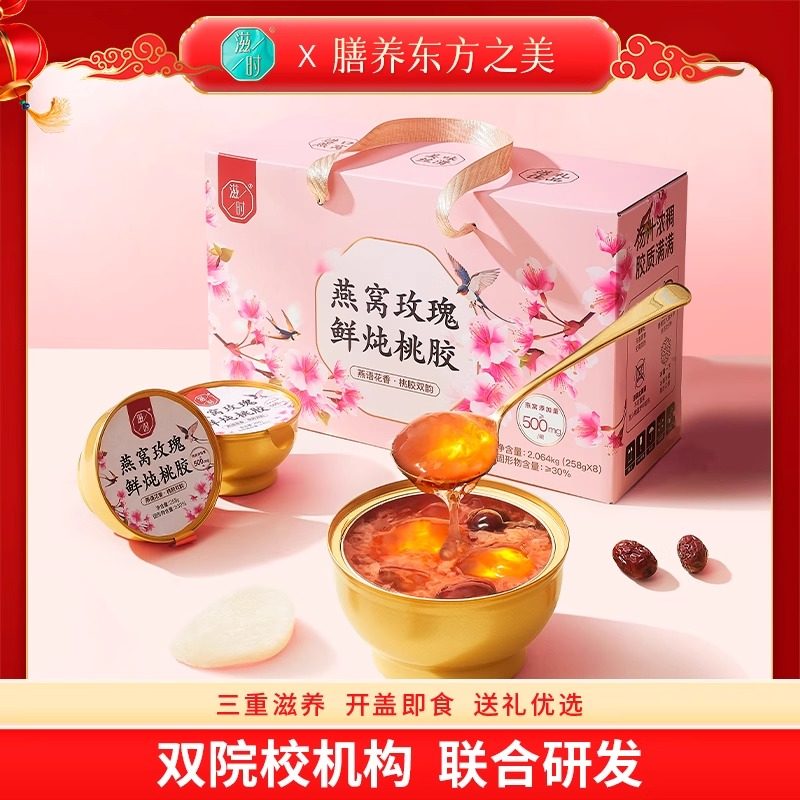 推荐理由:滋时燕窝玫瑰鲜炖桃胶礼箱装即食营养滋补免煮炖品速食羹礼盒送礼