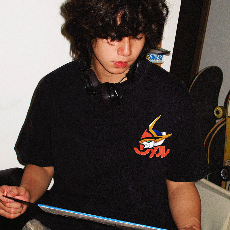 TEE7-圣诞日系复古动漫神龙斗士创界山水洗做旧纯棉宽松短袖T恤