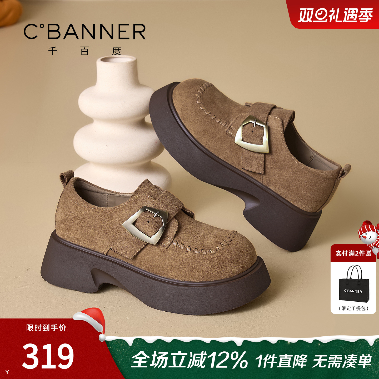 千百度复古袋鼠鞋女2025新款厚底乐福鞋女百搭民族风勃肯鞋女