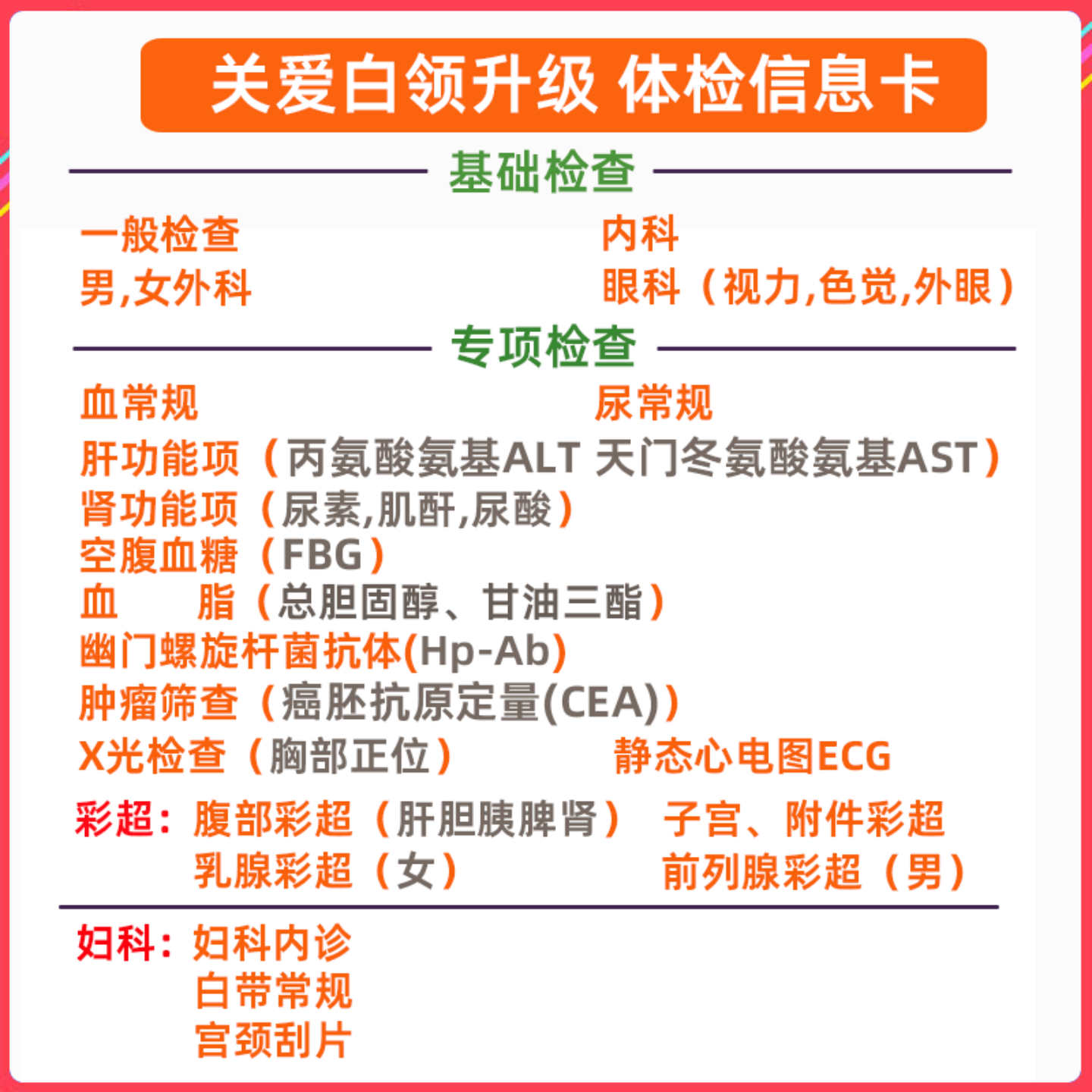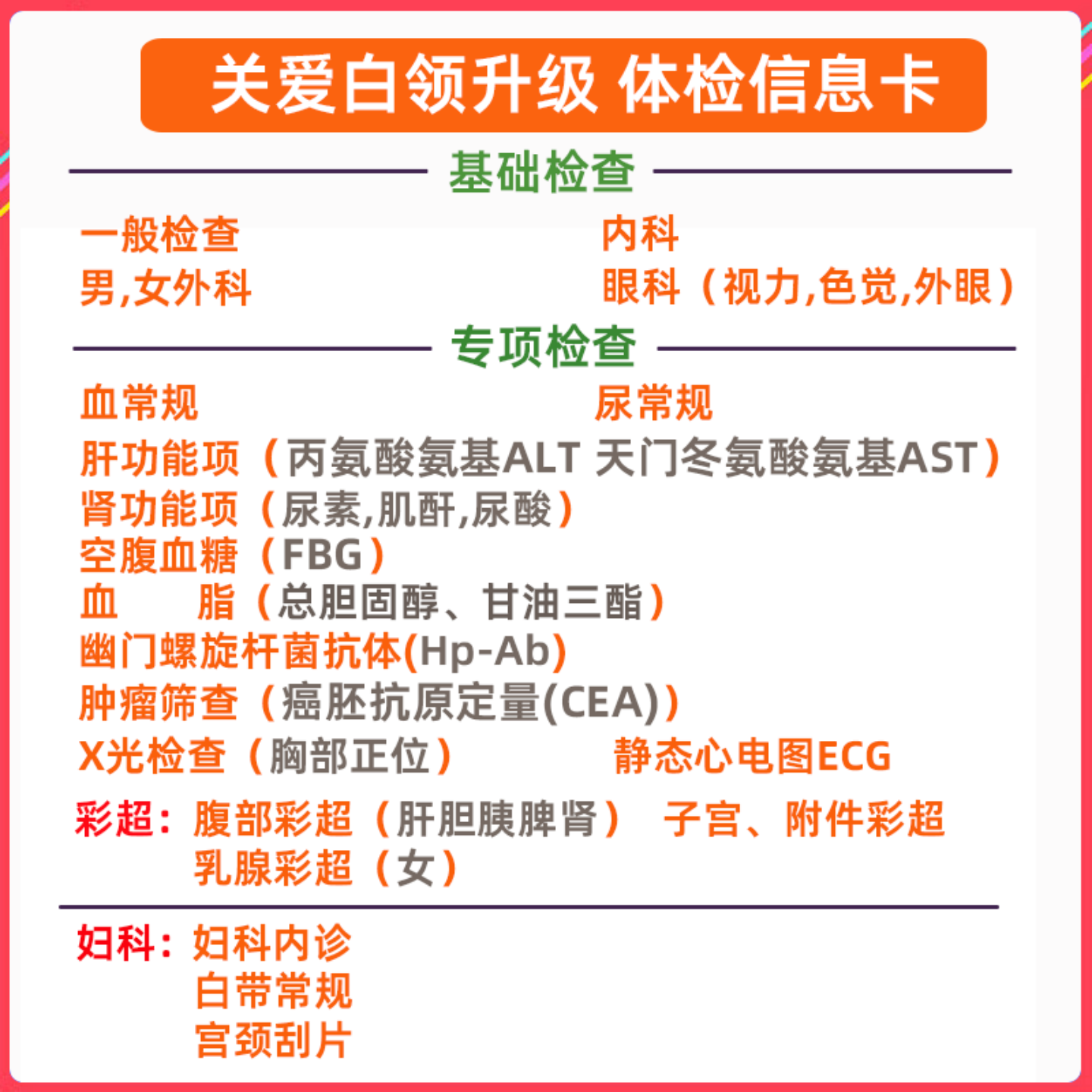 推荐理由:爱康国宾体检套餐女士男士中青年体检卡关爱白领健康体检个检团检