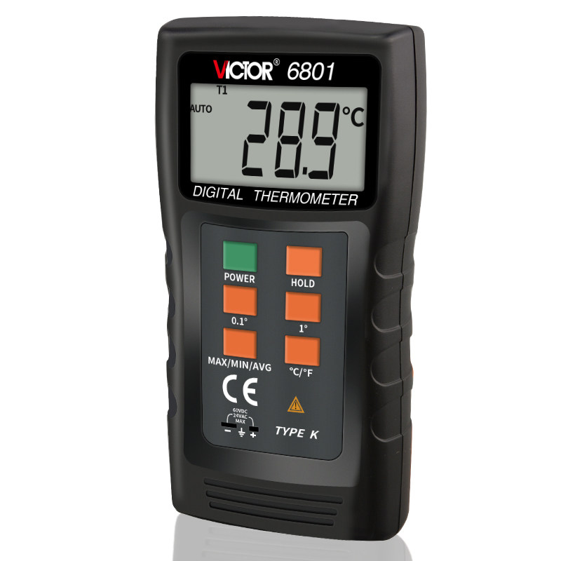 推荐理由:胜利数显热电偶温度计K型探头接触温度表VC6801高精度电子测温仪