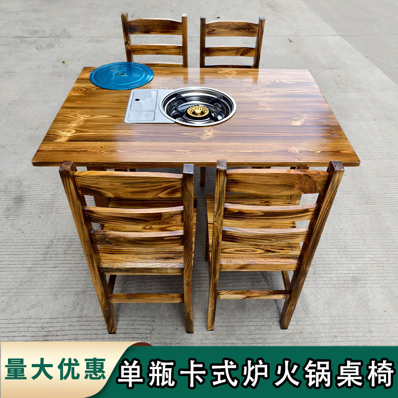 推荐理由:火锅桌子实木桌椅火锅店卡式炉方桌地摊烧烤桌碳化木饭店经济商用