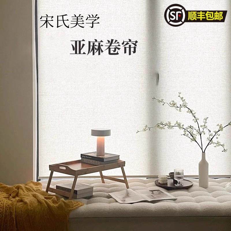 新中式古风亚麻窗帘卷帘办公室宋式美学卷拉隔断窗遮光升降遮阳帘
