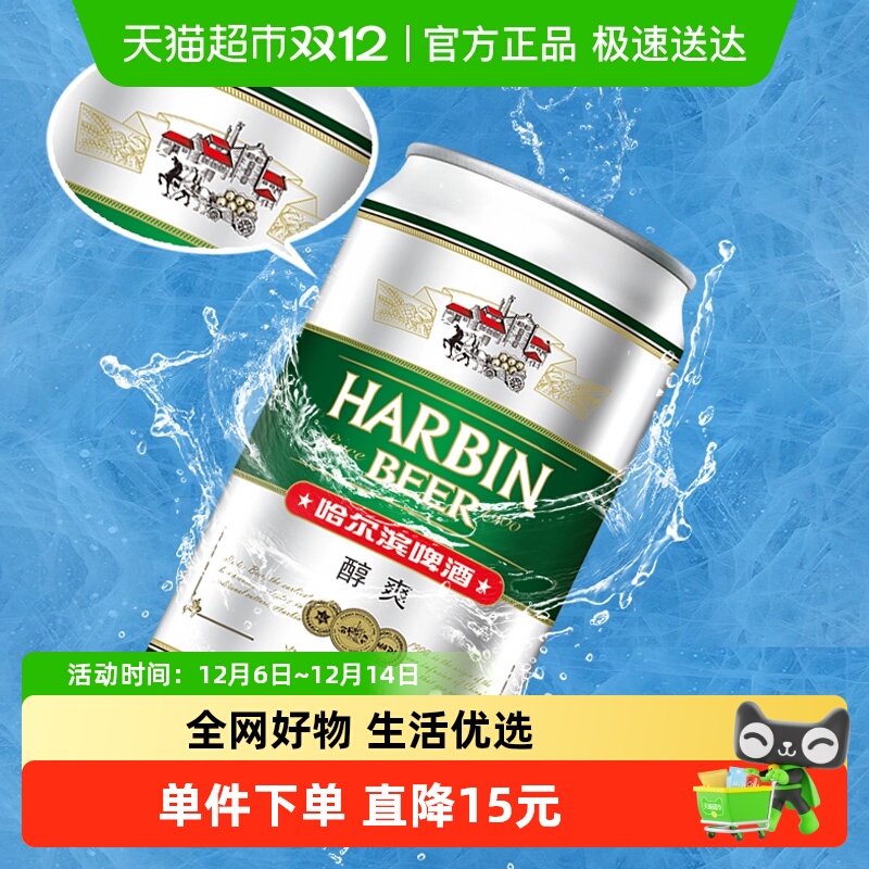 Harbin Beer/哈尔滨啤酒醇爽啤酒330ml*24听 冰爽哈啤9度整箱批发