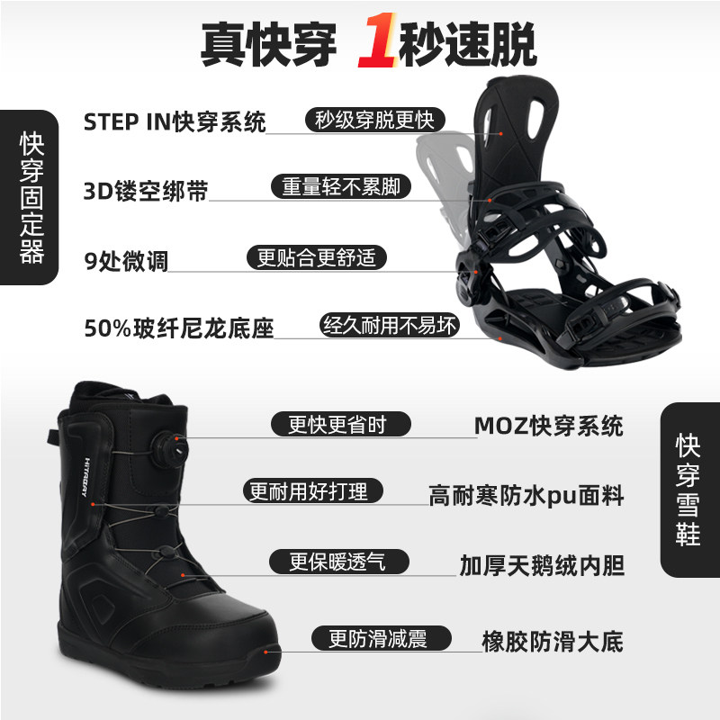 全能小黑板滑雪板单板成人入门滑板雪具雪鞋三件套快穿固定器套装