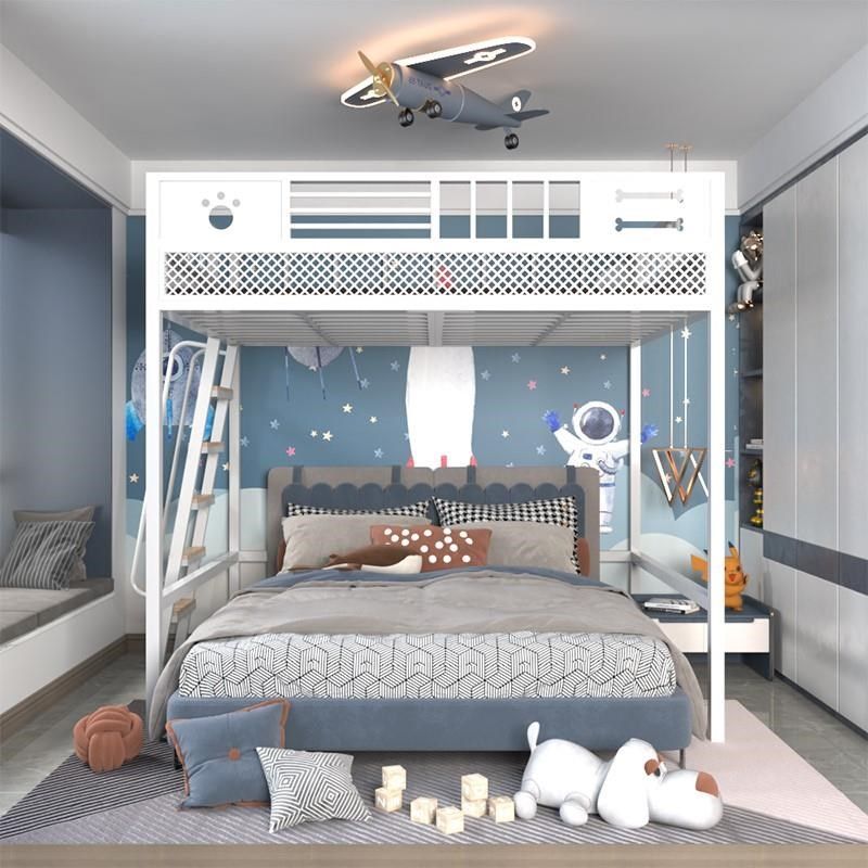 铁艺高架床小户型省空间复式阁楼铁架床上铺单上层高低床上床下桌