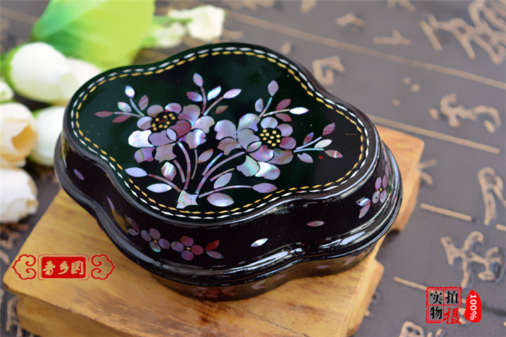 推荐理由:平遥推光漆器螺钿贝壳镶嵌首饰盒胭脂盒项链盒戒指盒拍古装戏道具