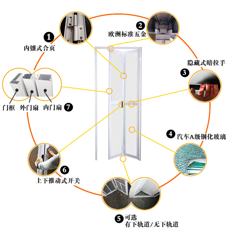 推荐理由:小折叠门卫生间门厕所门厨房门阳台门吊轨门铝合金门浴室洗手间门