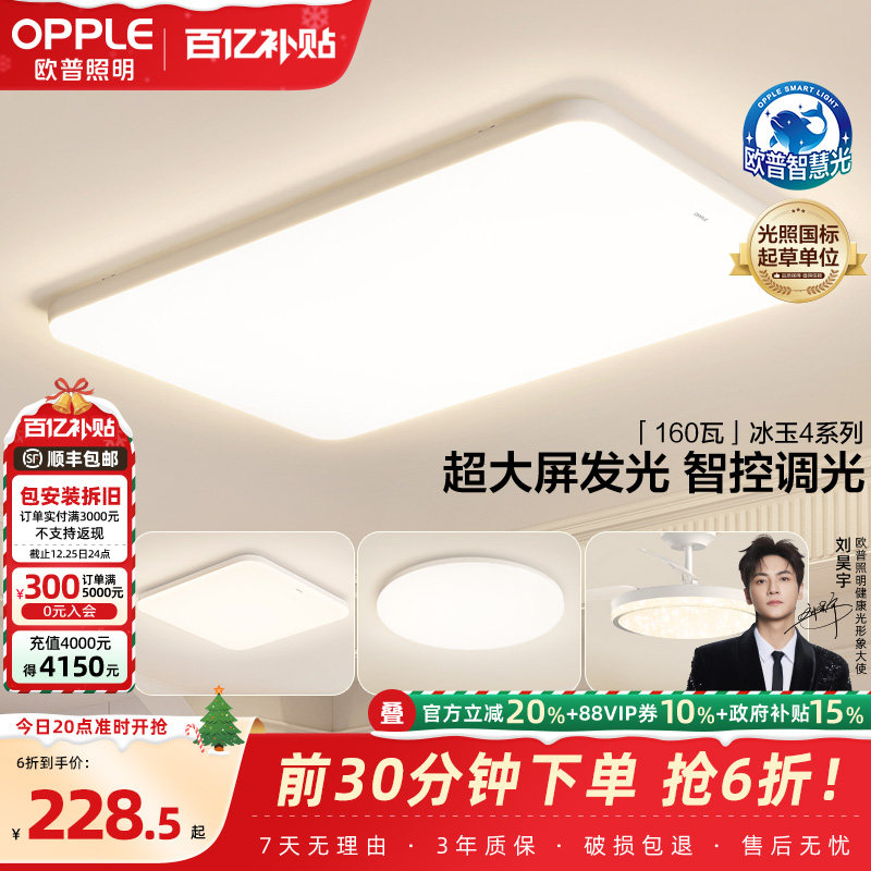 欧普LED吸顶灯客厅超薄全光谱现代简约卧室灯具冰玉小白灯智控TC