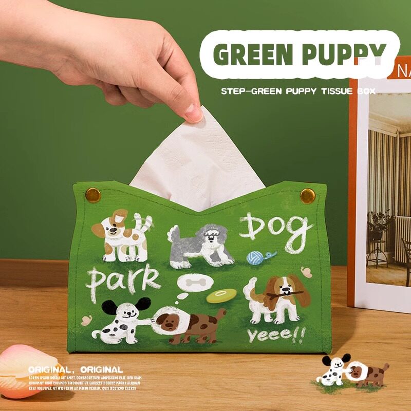 金金兔可爱踏青小狗家用客厅创意抽纸盒轻奢皮质高级感餐桌纸抽盒