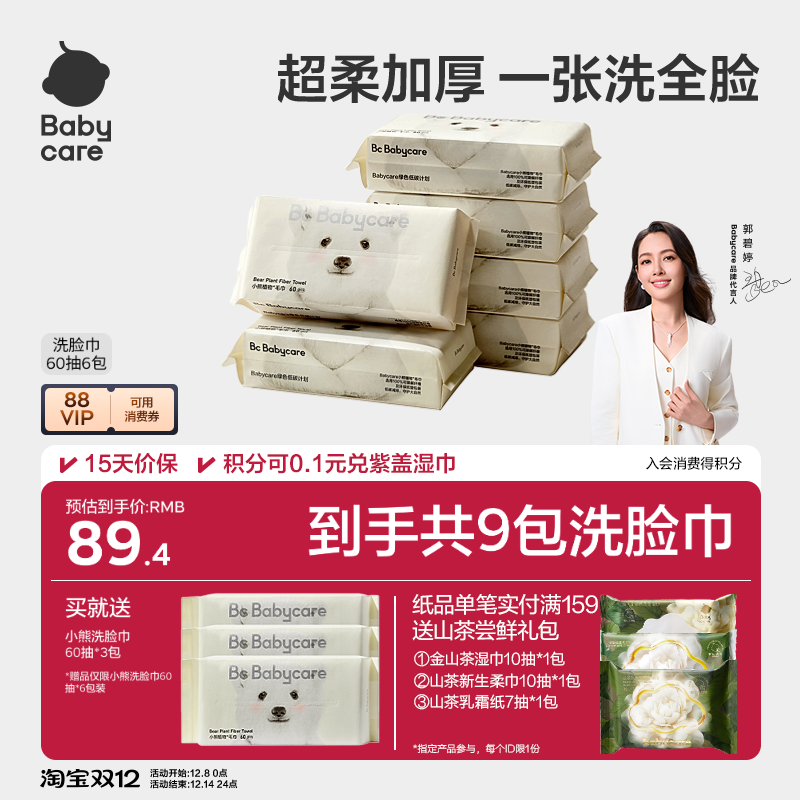 babycare小熊洗脸巾一次性洁面巾可干湿两用非湿纸巾60抽便携装