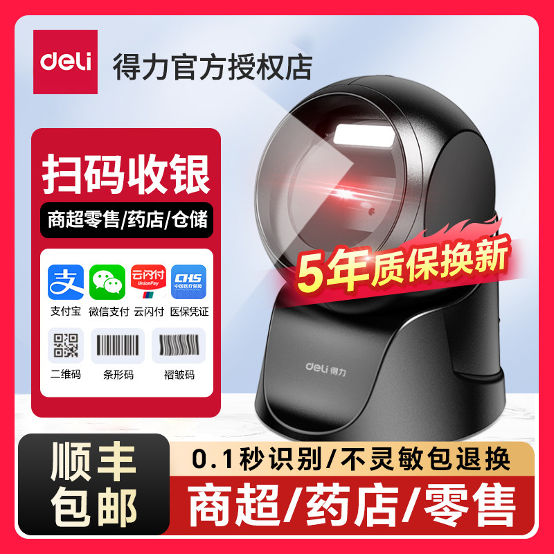 得力收银扫码器超市收银扫码枪二维码扫码器超市便利店扫码盒子商品条码扫码球微信支付宝收付款扫描平台扫码