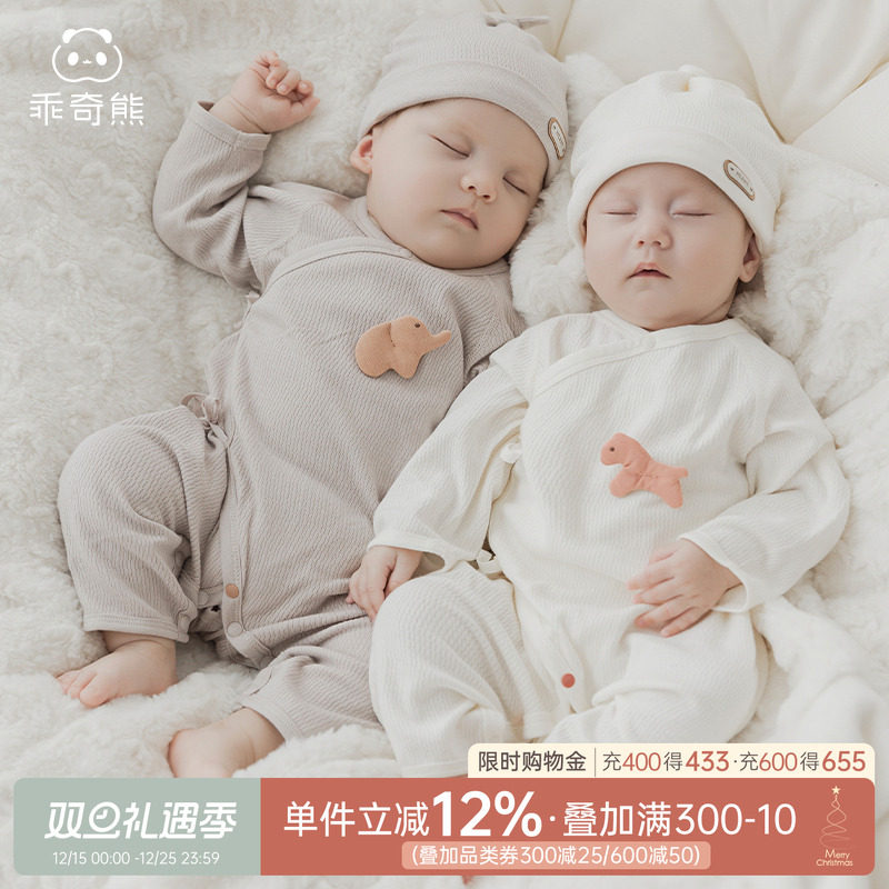 乖奇熊新生儿春秋季长袖连体衣纯棉和尚服婴儿宝宝绑带哈衣服秋装