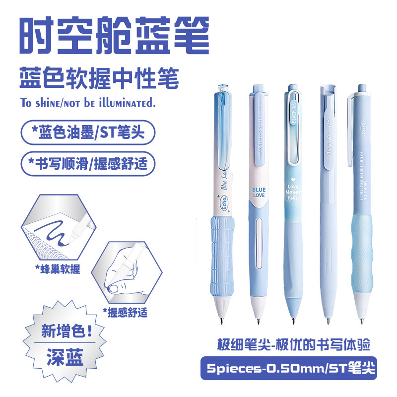 蓝笔刷题套装高颜值按动中性笔0.5st 蓝色笔芯速干女生学生考试笔