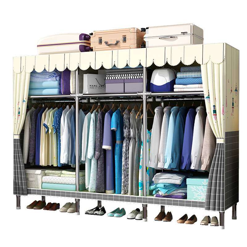 找工厂收纳柜家用免安装折叠简易布衣柜钢架加厚加粗布艺衣橱
