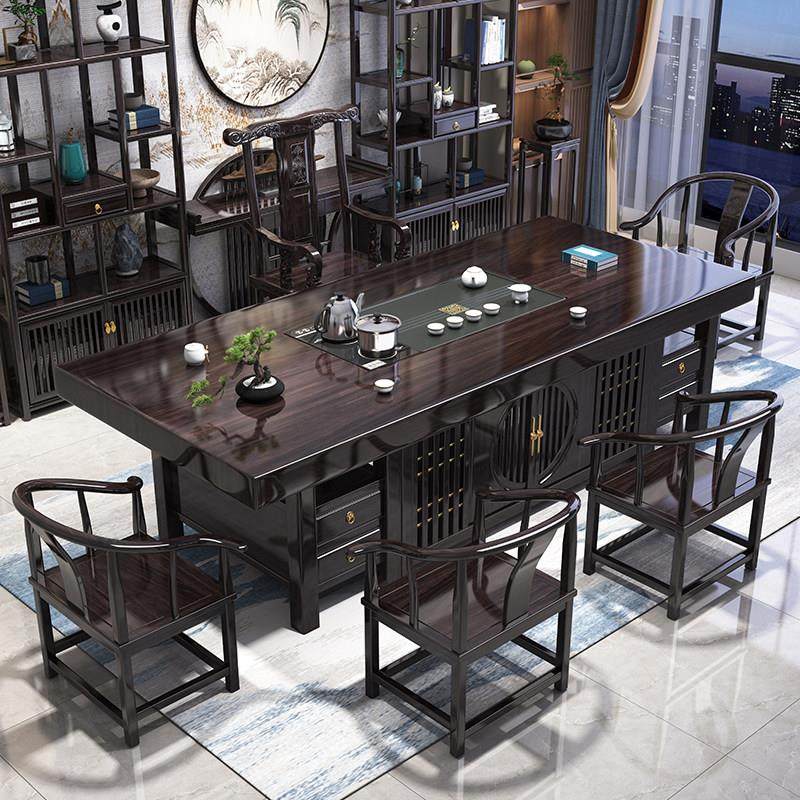 新中式实木大板茶桌椅组合一桌五椅家用禅意茶几茶具泡茶一体茶台