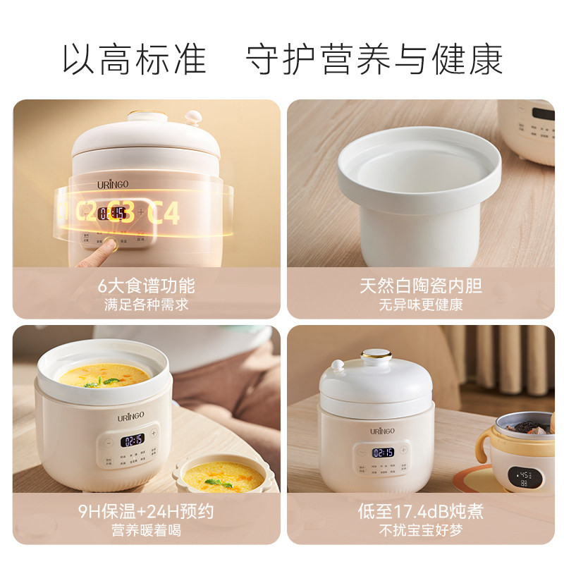 uringo七彩叮当婴儿微压电炖锅熬米油神器宝宝辅食锅BB煲煮粥炖盅