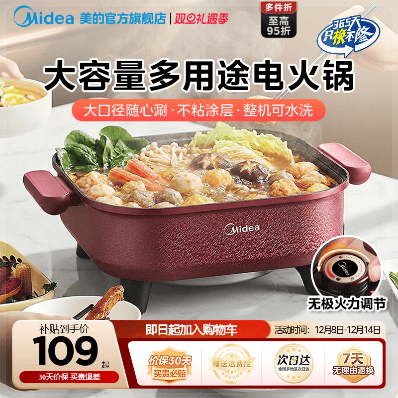 美的电火锅电锅家用多功能料理一体式电煮锅电炒锅电热火锅专用锅