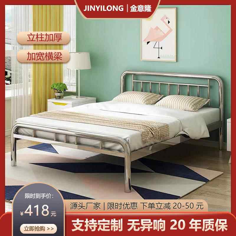 铁艺床双人床家用卧室加粗加厚床架不锈钢单人床架出租房用铁床架
