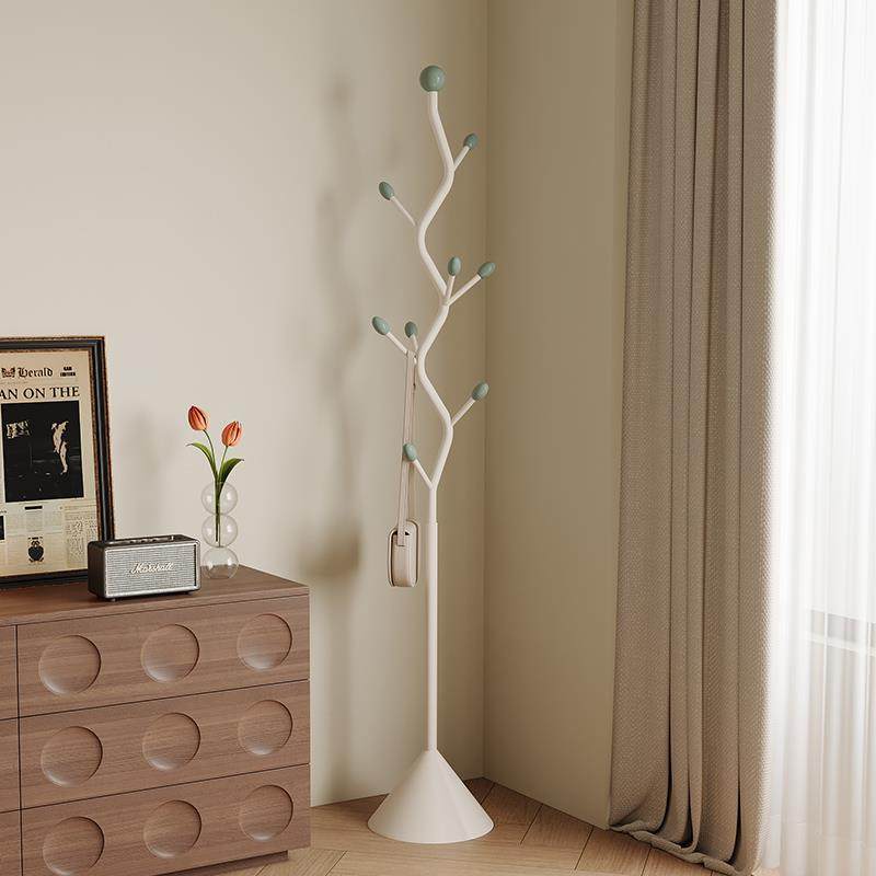 奶油风挂衣架落地卧室铁艺立式挂包入户小型收纳简易家用衣帽架