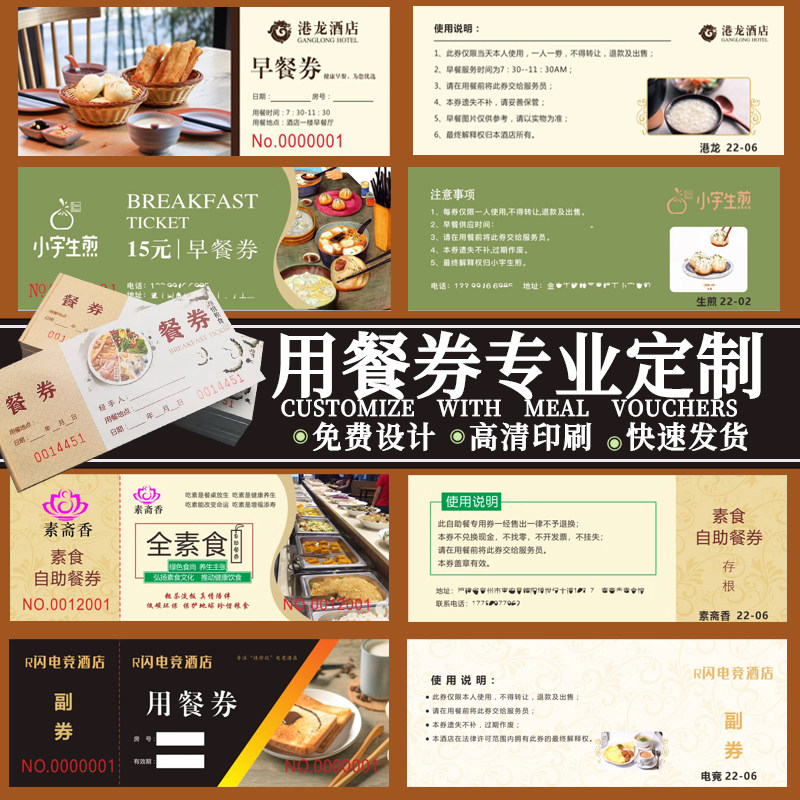 酒店餐券定制温泉咖啡厅用餐代金券设计饭厅食堂纸质手撕饭票餐票