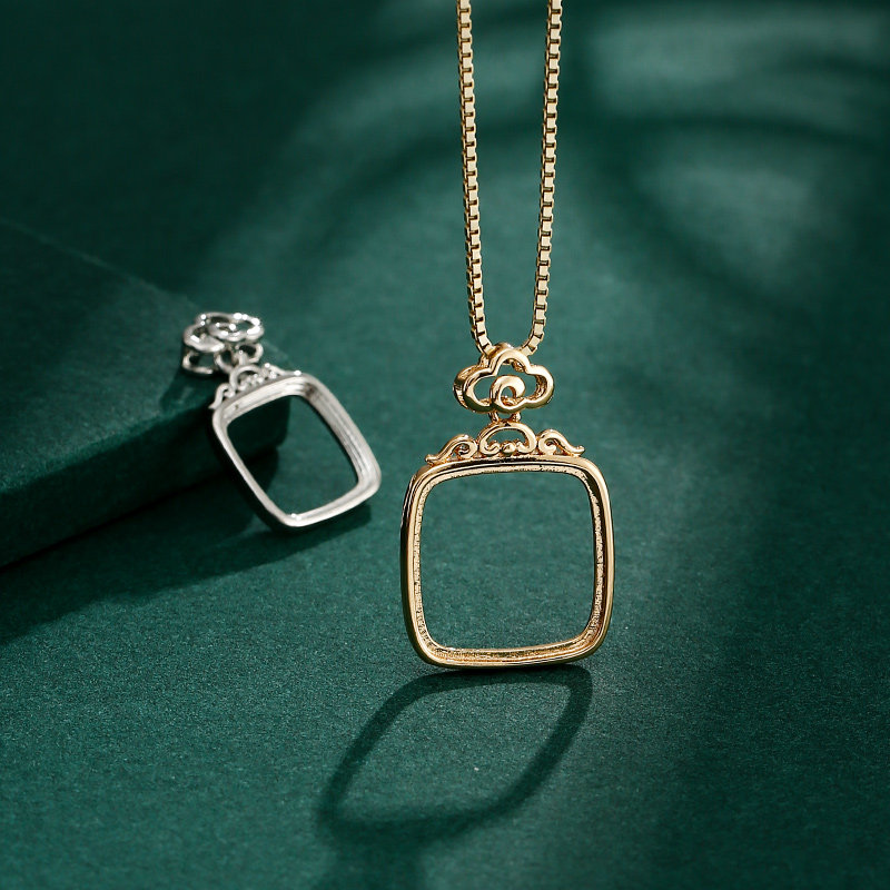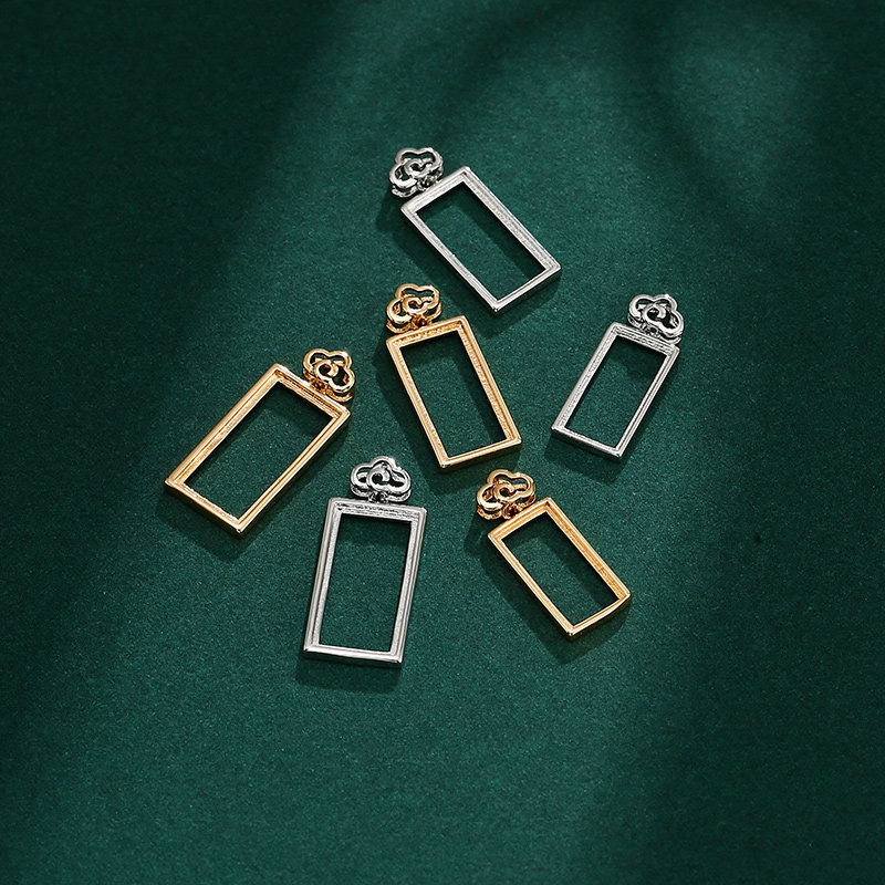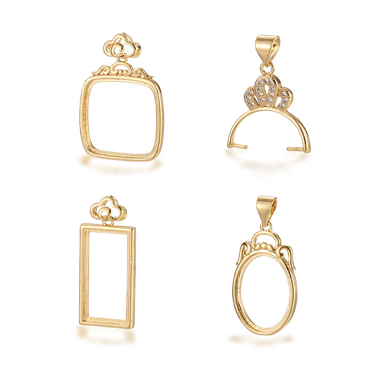 日韩珍珠吊坠扣头diy配件18K黄金镶嵌蜜蜡绿松方形椭圆形吊坠空托