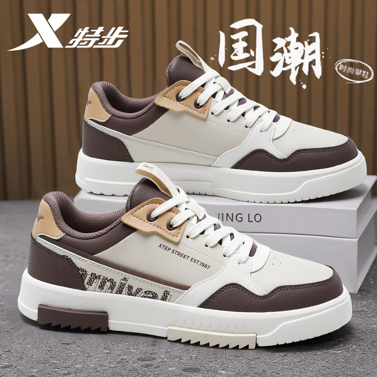 特步男鞋2025新款板鞋皮面低帮轻便休闲鞋子冬季防水正品运动鞋男