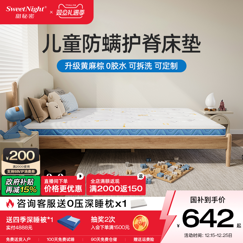 sweetnight甜秘密儿童床垫护脊专用无甲醛超标硬椰棕防螨乳胶定制