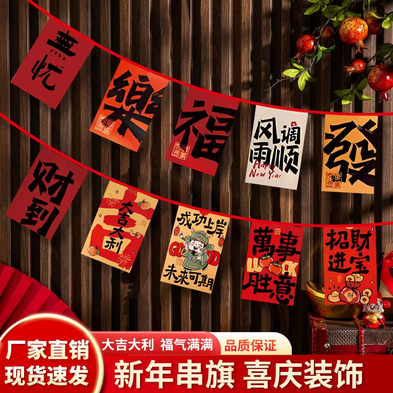 2026新年元旦春节串旗店铺商场吊旗拉花场景氛围布置装扮彩旗挂件