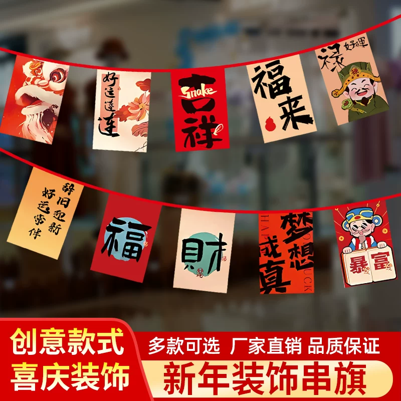推荐理由:2026新年元旦春节串旗店铺商场吊旗拉花场景氛围布置装扮彩旗挂件