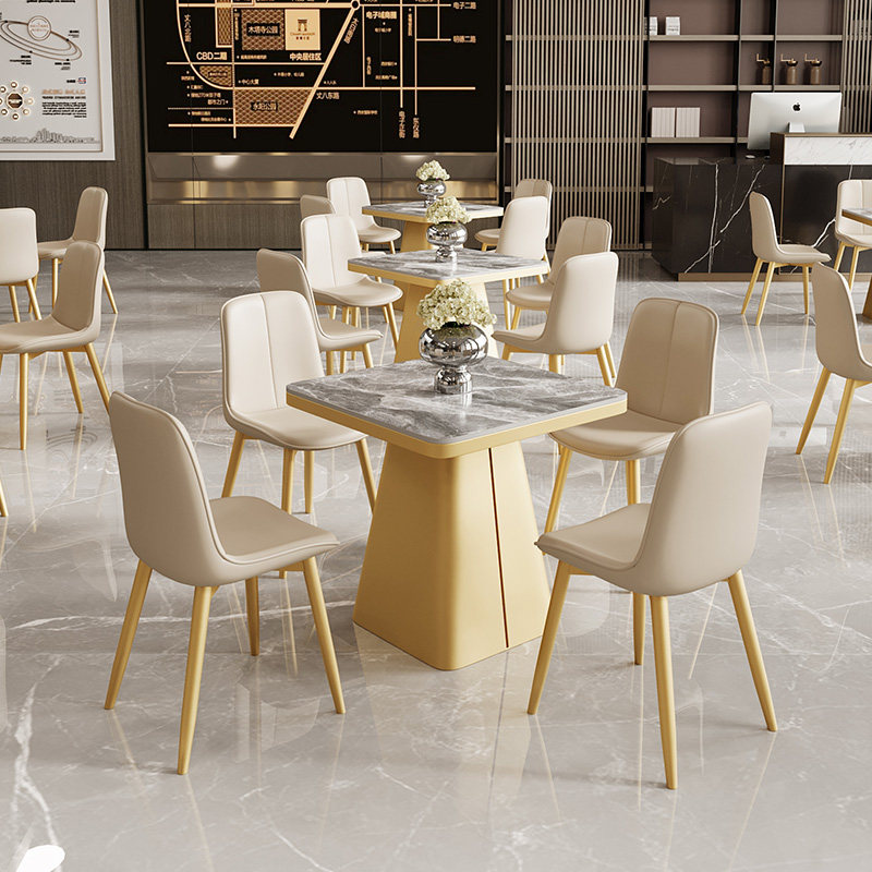 小型岩板洽谈桌椅组合方形轻奢高级商务休息区展厅会议接待棋牌桌