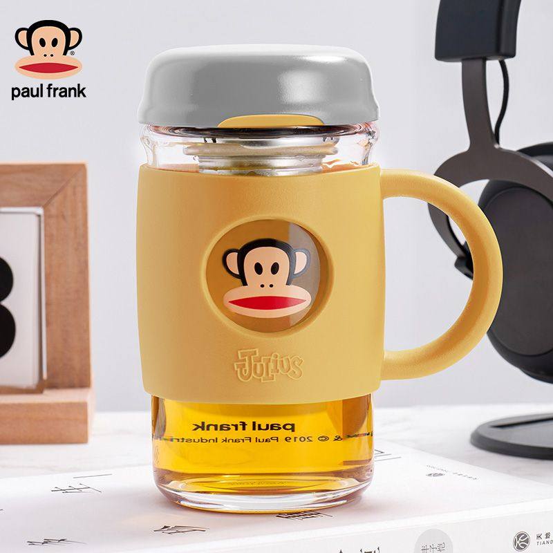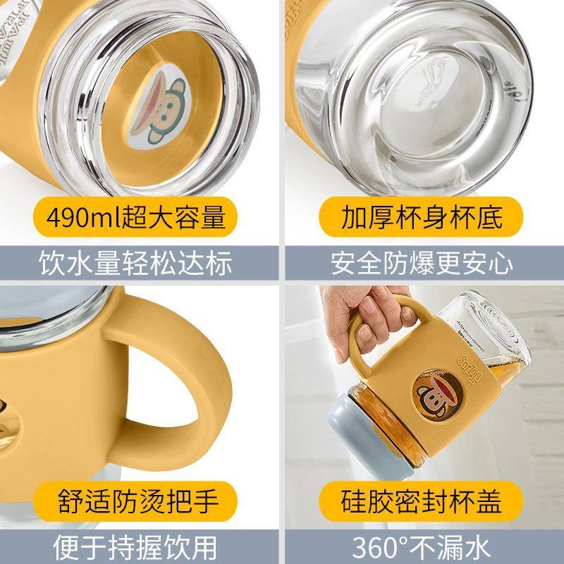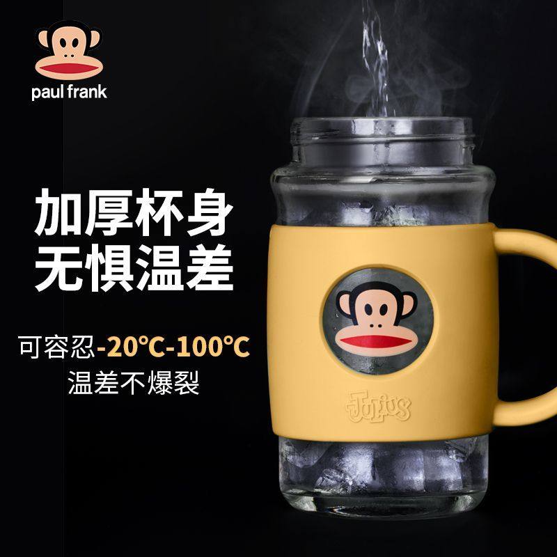 大嘴猴玻璃杯家用带手柄水杯男女带盖加厚办公室商务随手花茶杯子