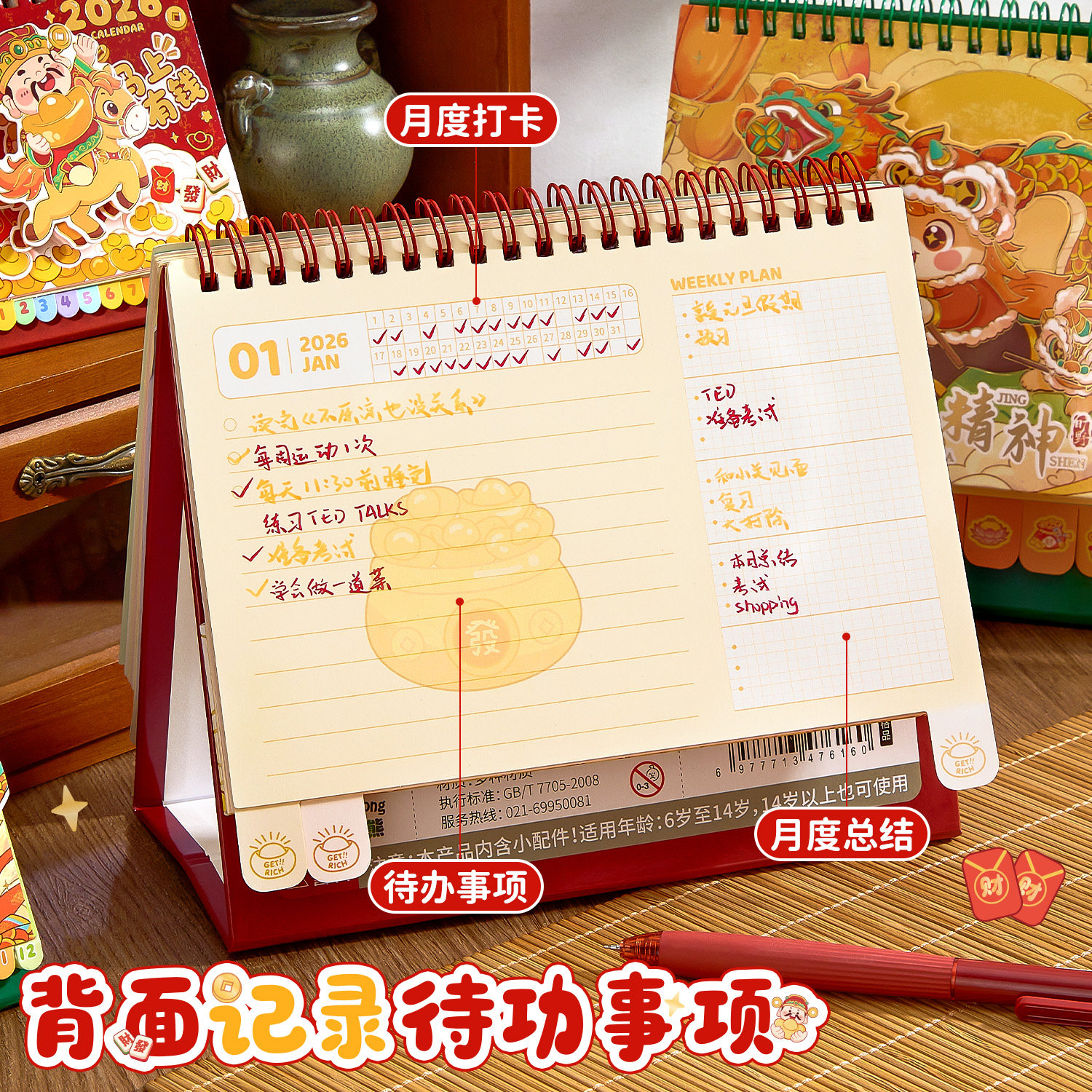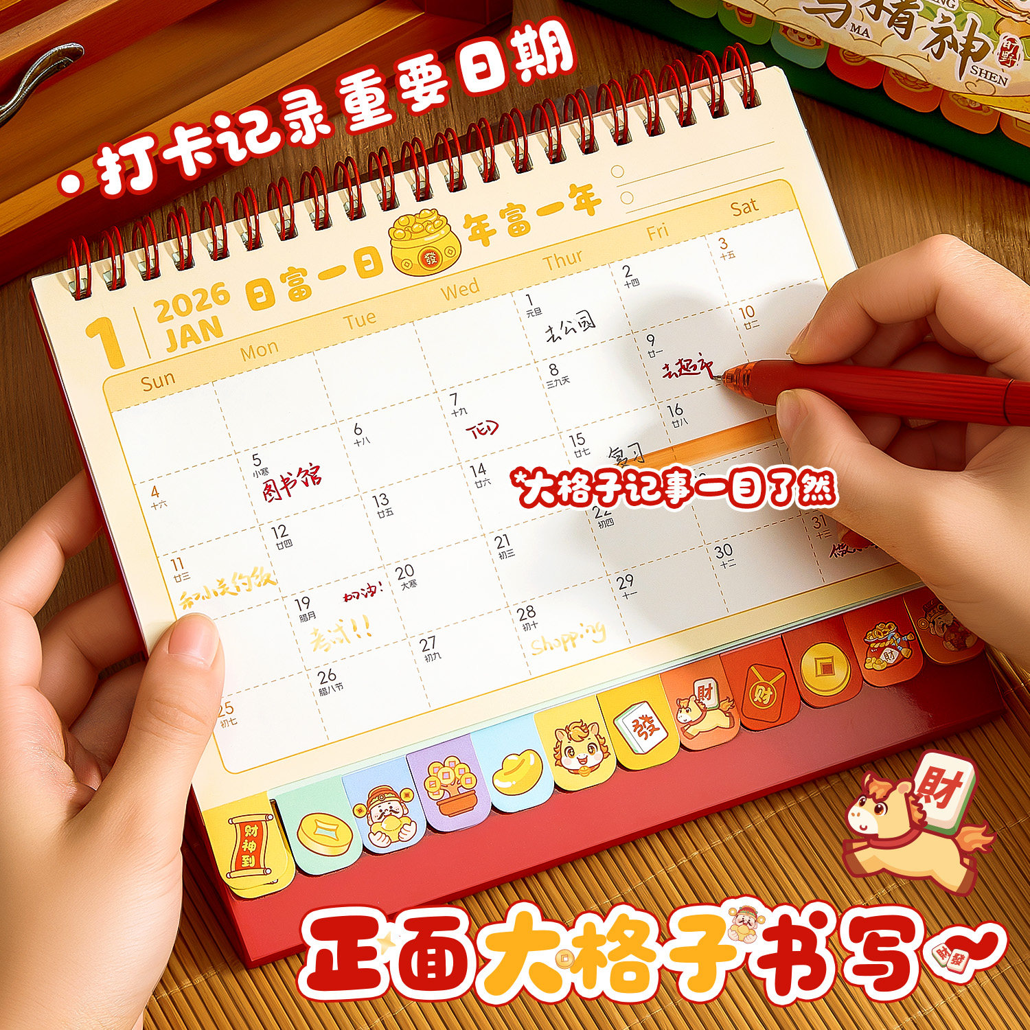 推荐理由:2026马年新款小神仙转盘台历新年财神日历办公室解压小摆件中国风桌面记事本日程计划表学生高考打卡创意月历