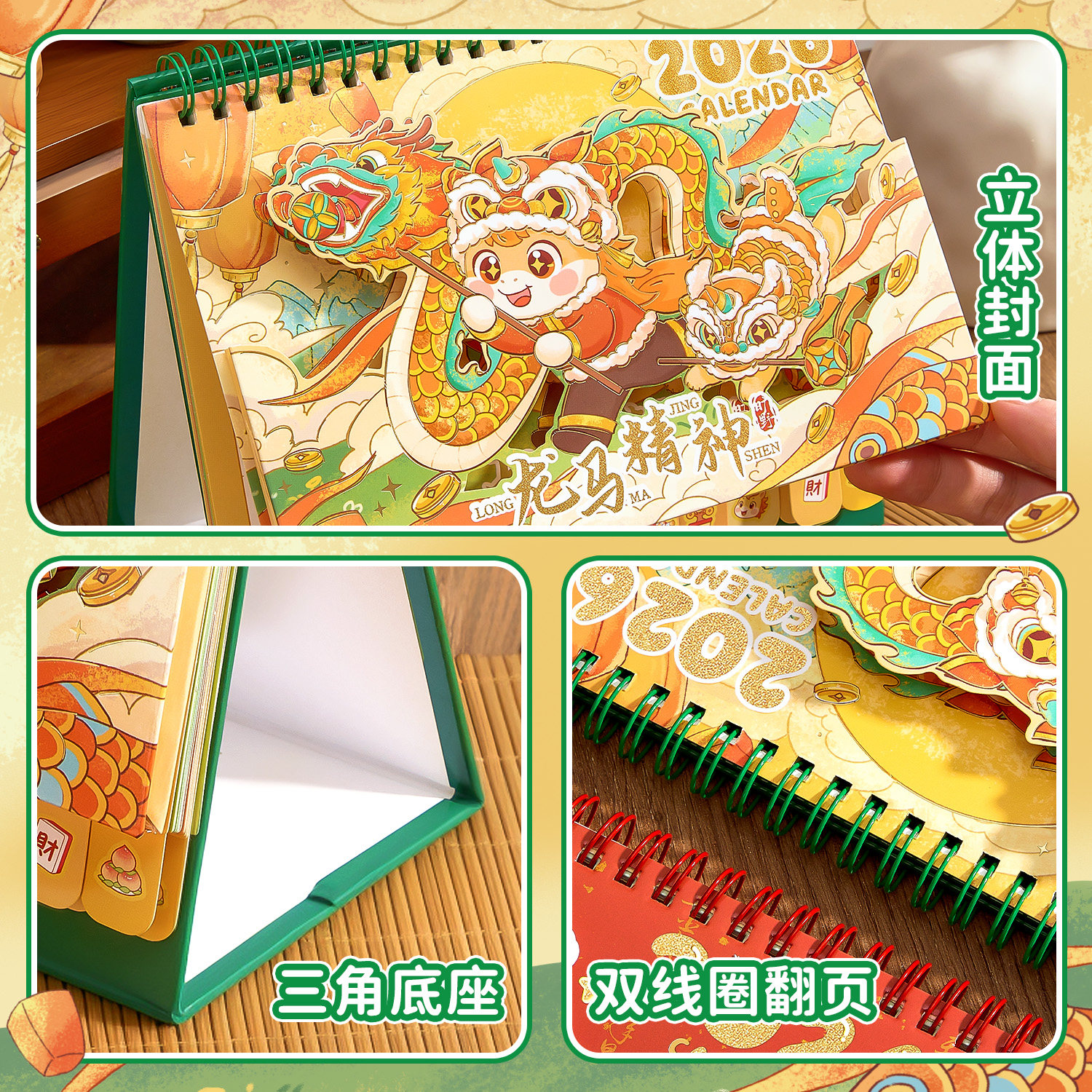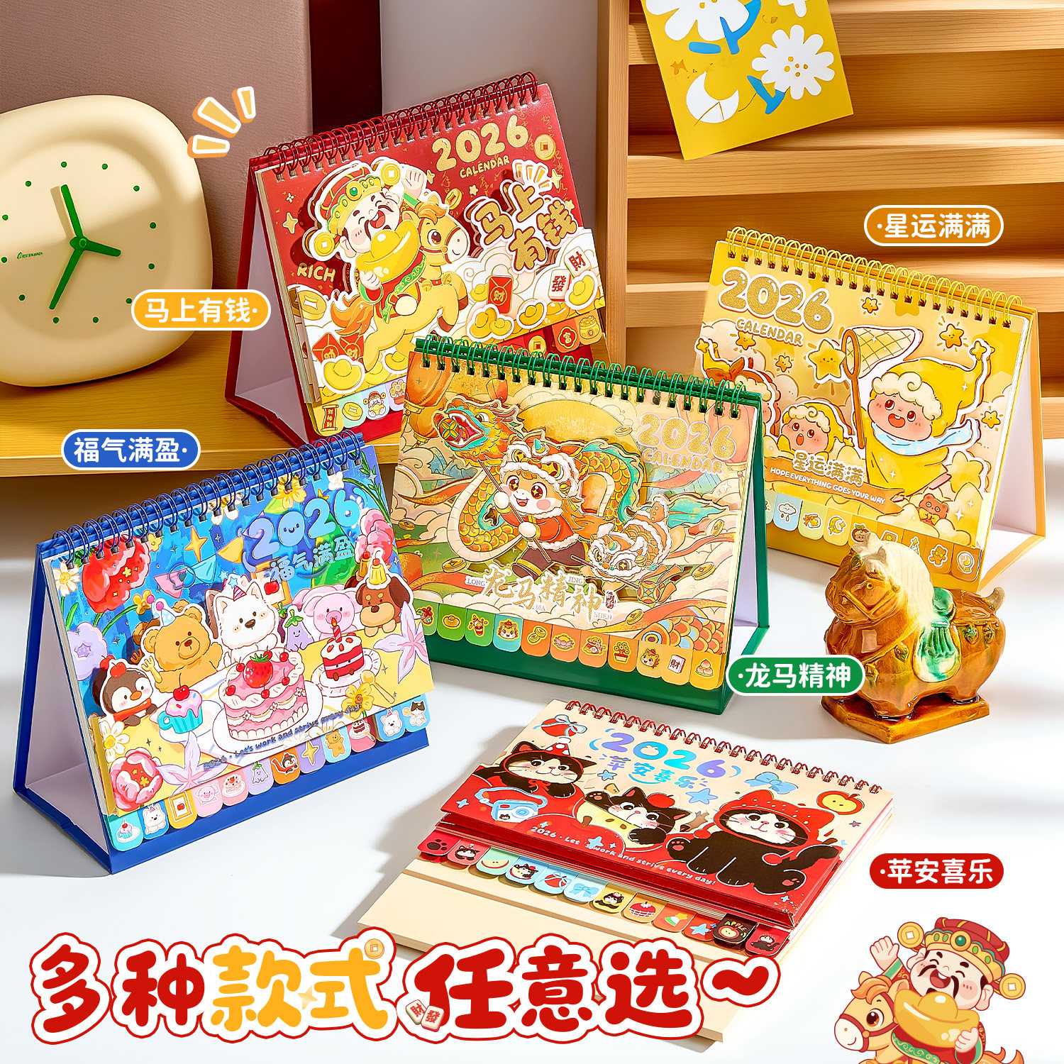 2026马年新款小神仙转盘台历新年财神日历办公室解压小摆件中国风桌面记事本日程计划表学生高考打卡创意月历