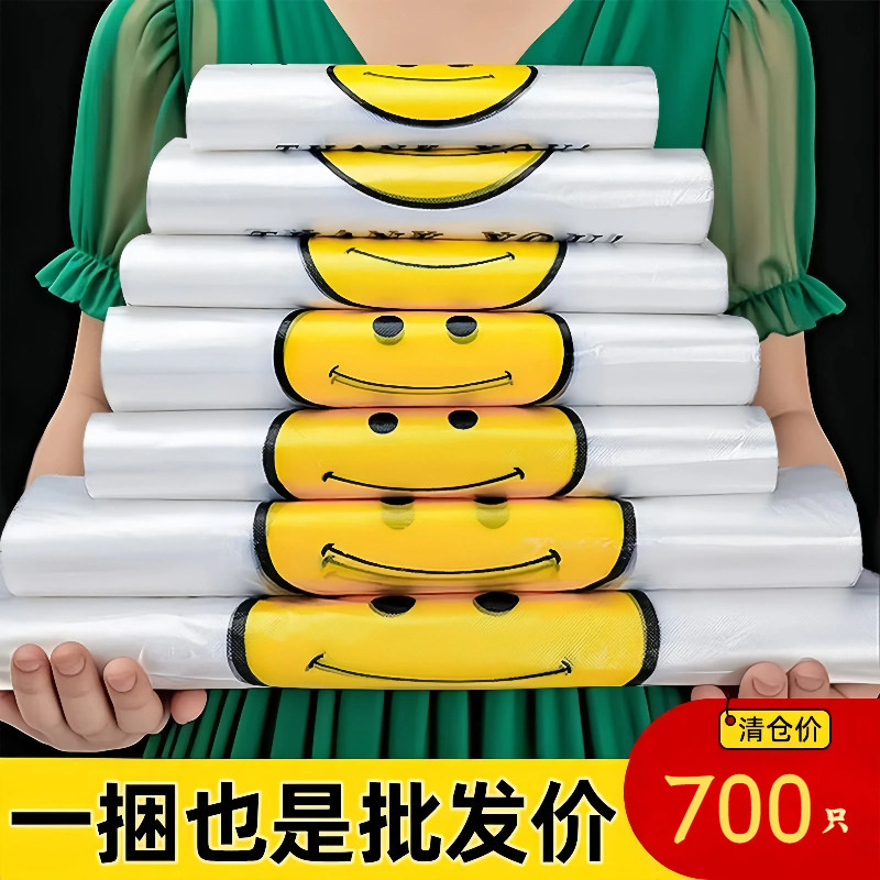 推荐理由:笑脸塑料袋批发加厚方便袋外卖食品包装购物打包背心手提袋子定制