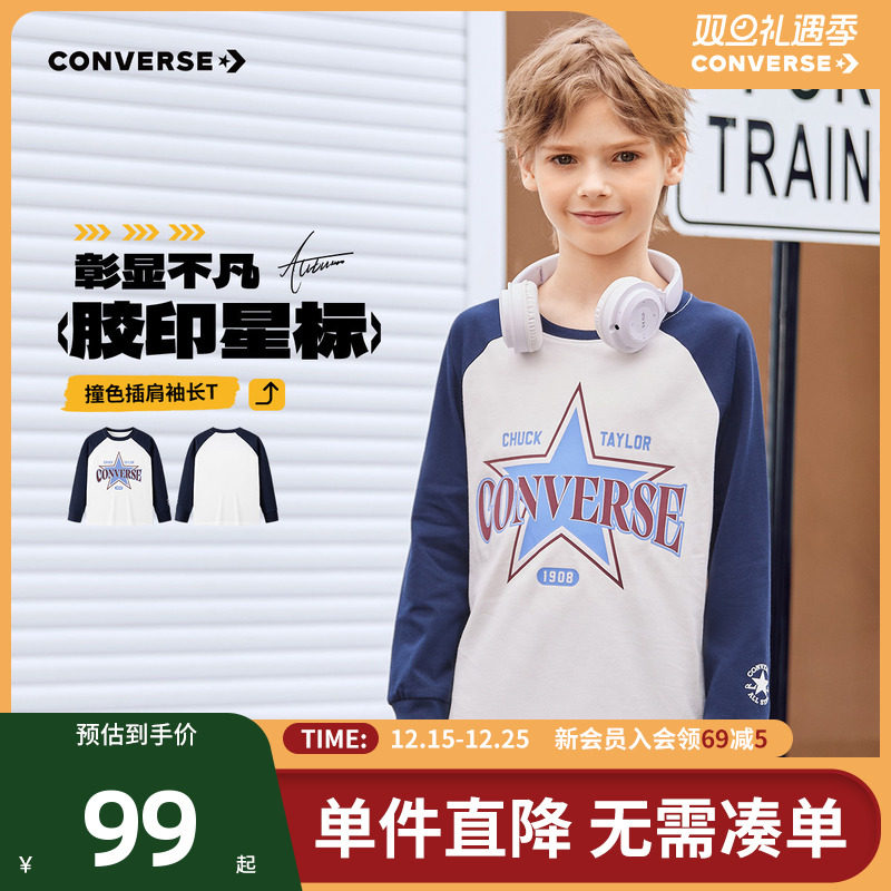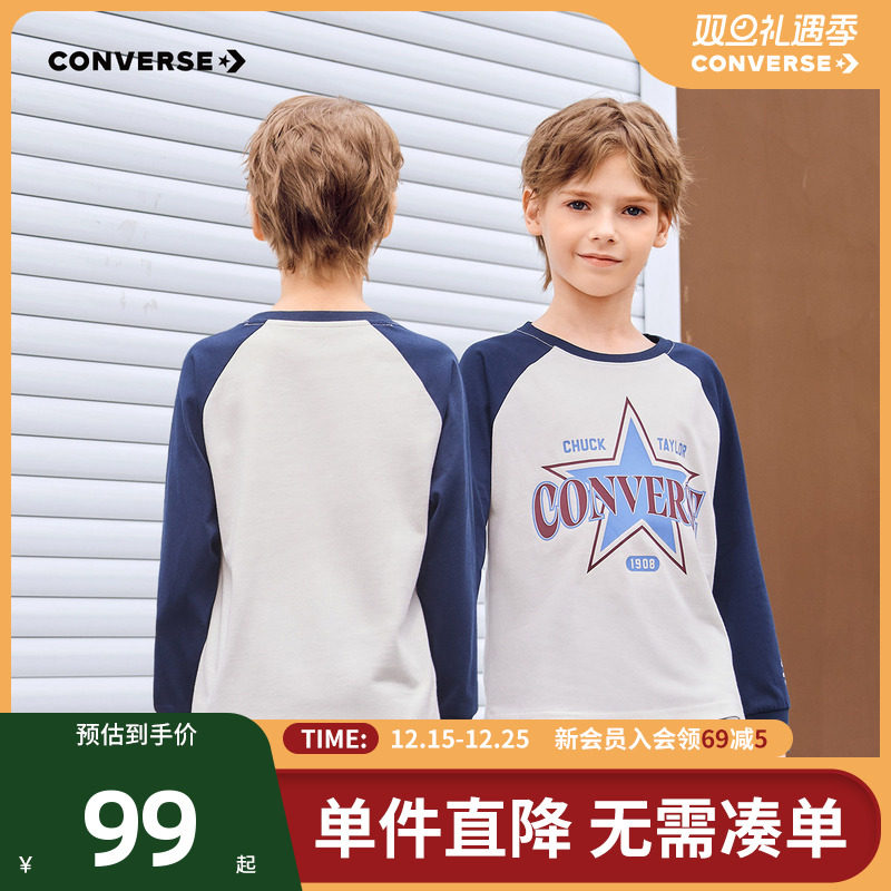 匡威童装男童长袖T恤2025冬季新款插肩袖印花百搭中大童打底衫潮