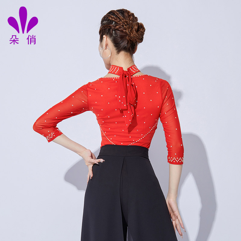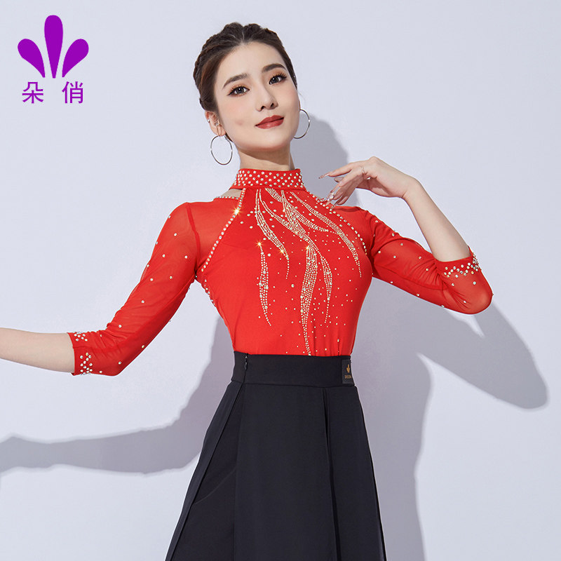 朵俏拉丁舞服新款上衣舞蹈服专业摩登舞练功服高级演出服跳舞衣服