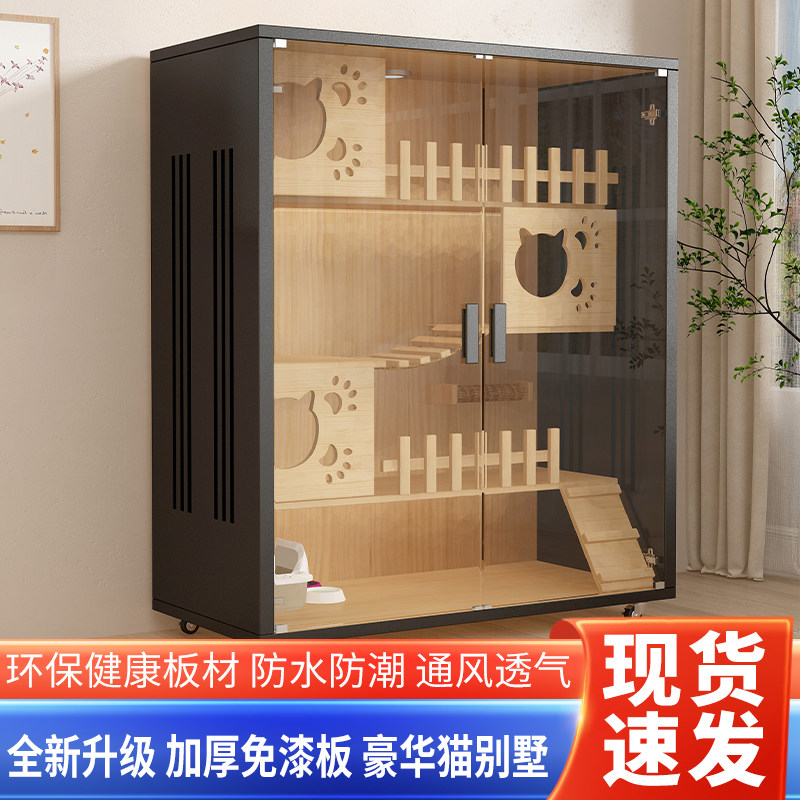 猫别墅猫笼子豪华木质猫舍铁网门猫屋猫厕一体猫柜透气不占地猫窝