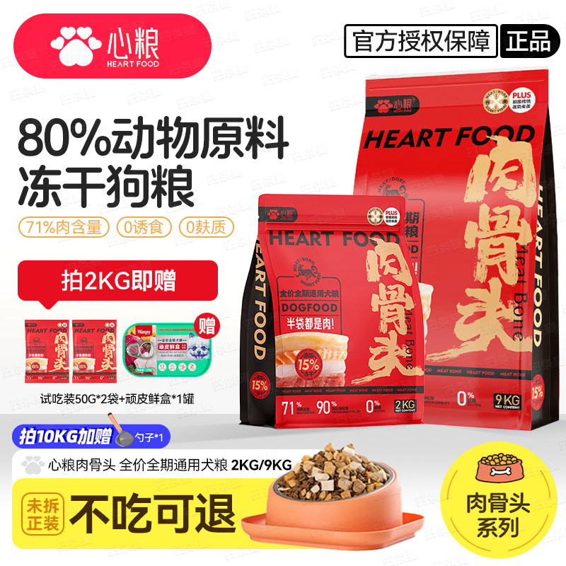 心粮狗粮肉骨头狗粮全期全价冻干大中小性通用冻干鲜肉狗粮