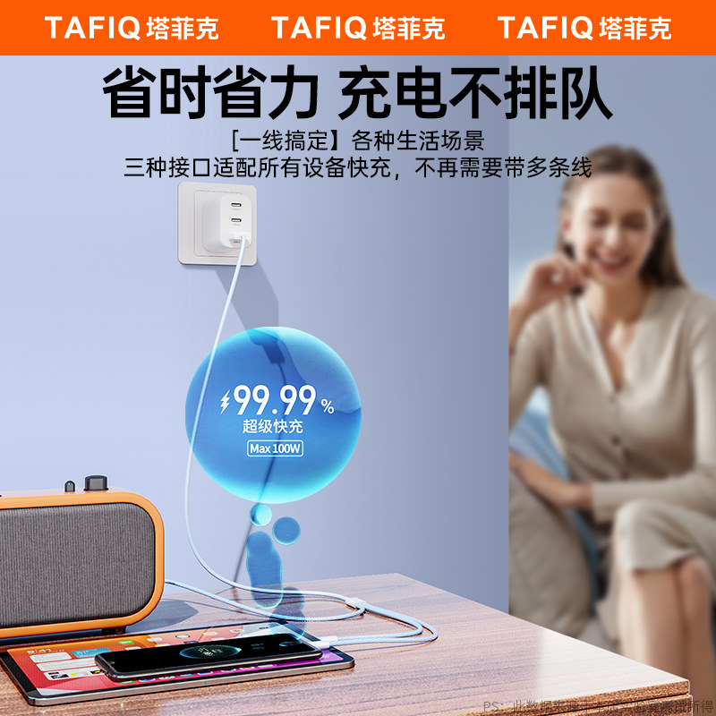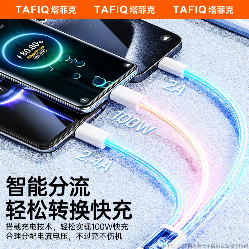 推荐理由:【100W超级闪充】塔菲克三合一数据线一拖3充电器车载万能通用手机usb头充电宝多功能适用安卓苹果tpyec华为
