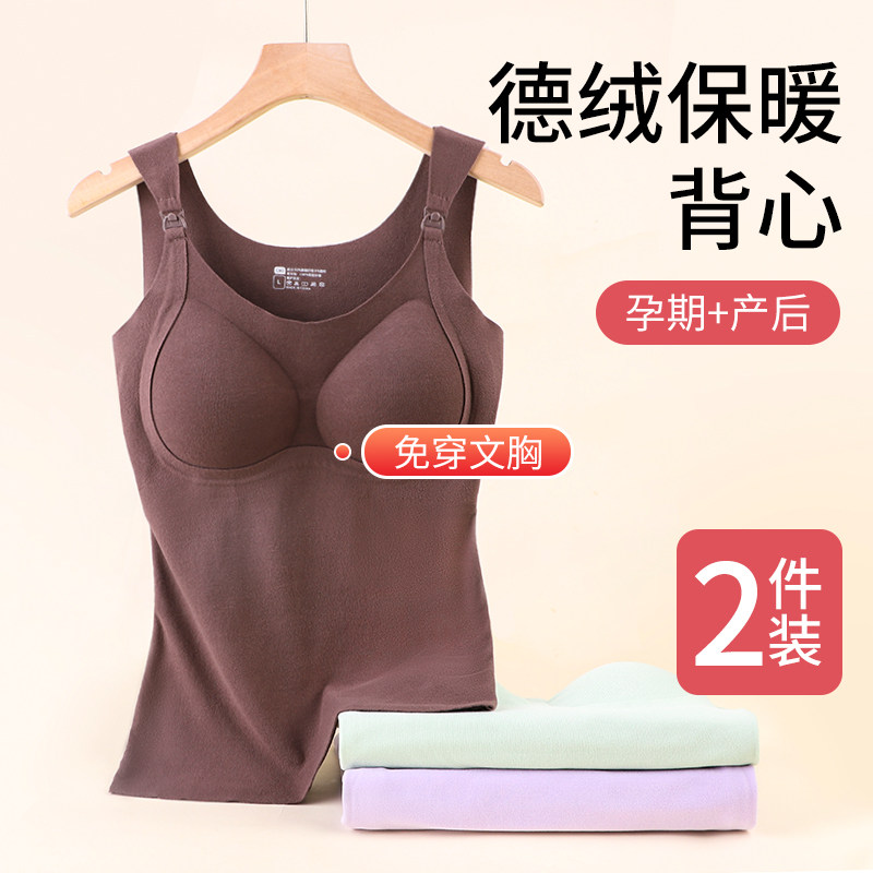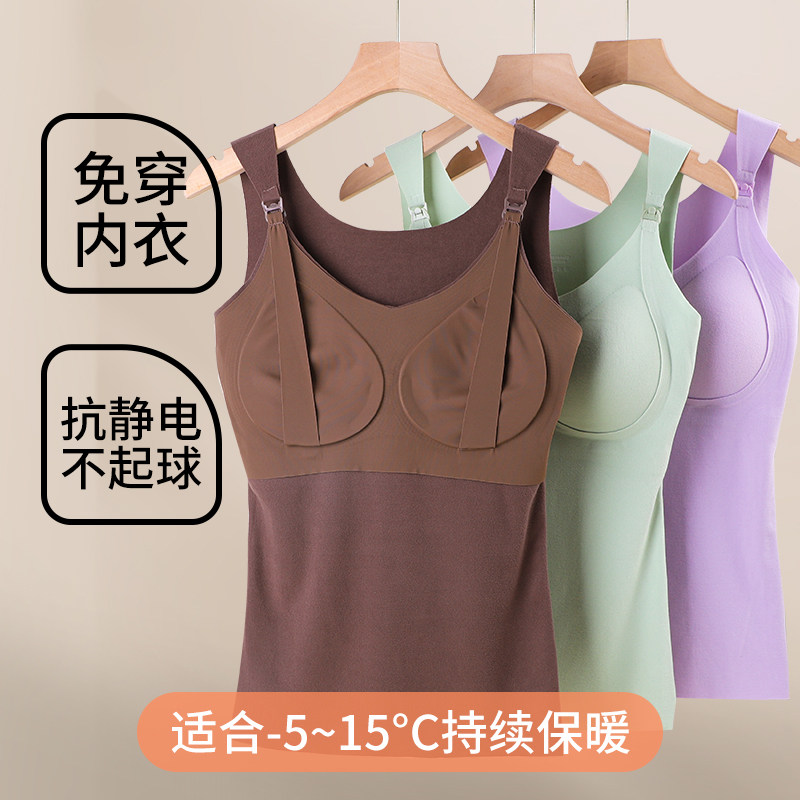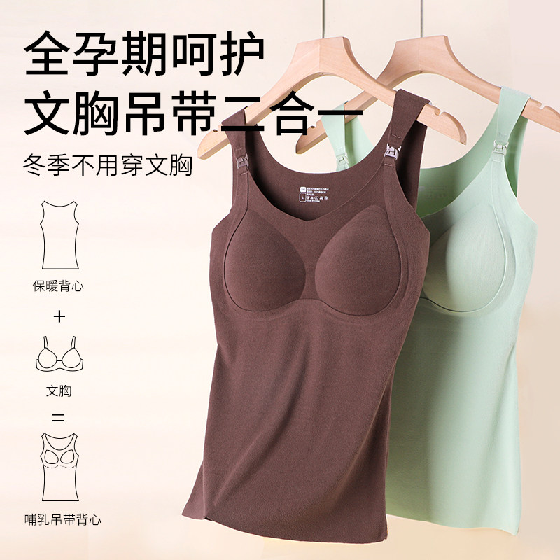 慕倩哺乳背心吊带秋冬款免穿文胸产后喂奶专用带胸垫孕妇保暖内衣