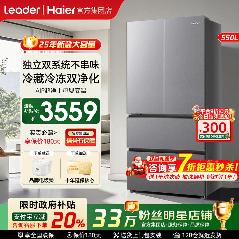 推荐理由:【补贴20%】海尔冰箱550升双系统统帅575法式多开门一级能效家用