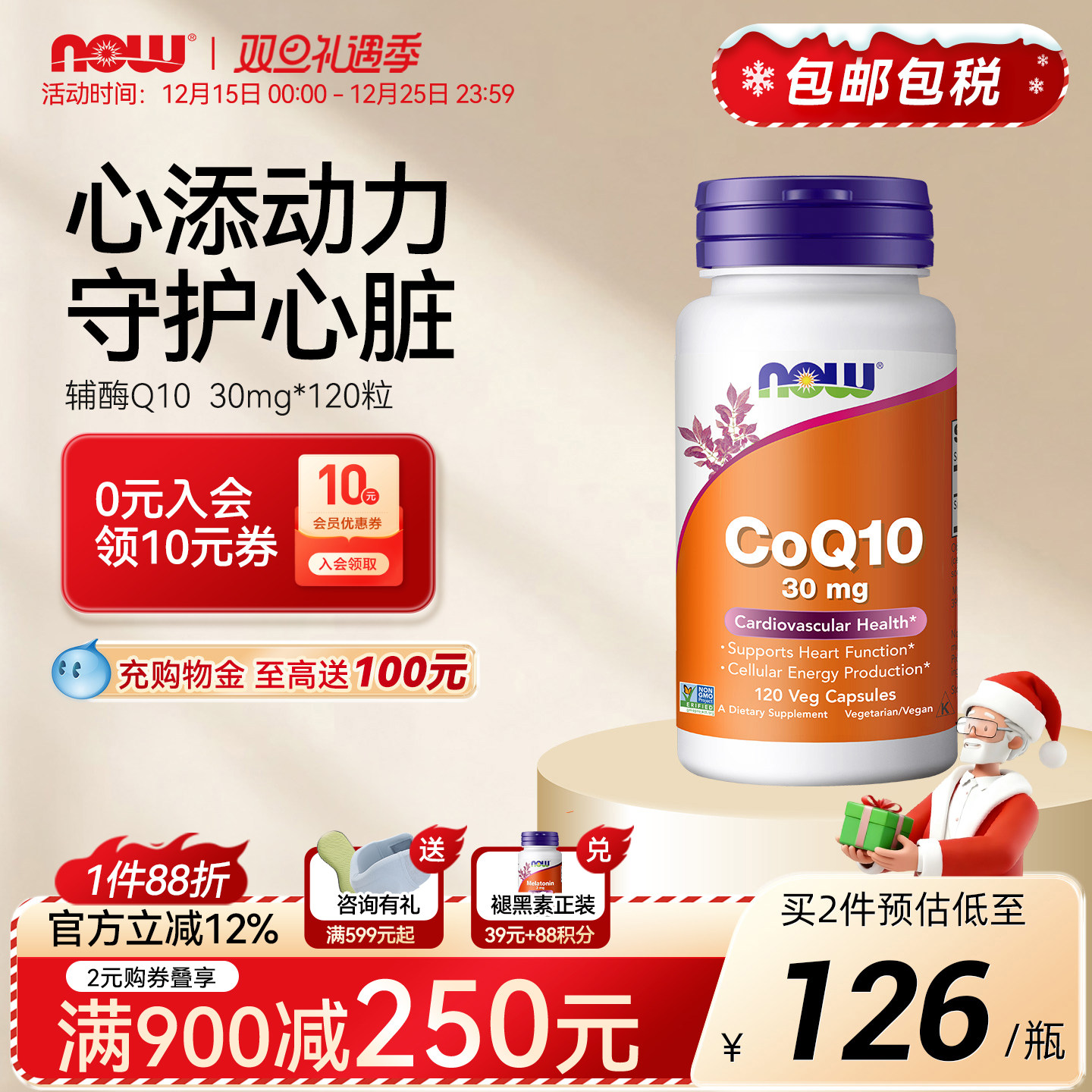 Nowfoods辅酶q10心脏人宠共用分享猫咪狗狗宠物美国进口30mg胶囊