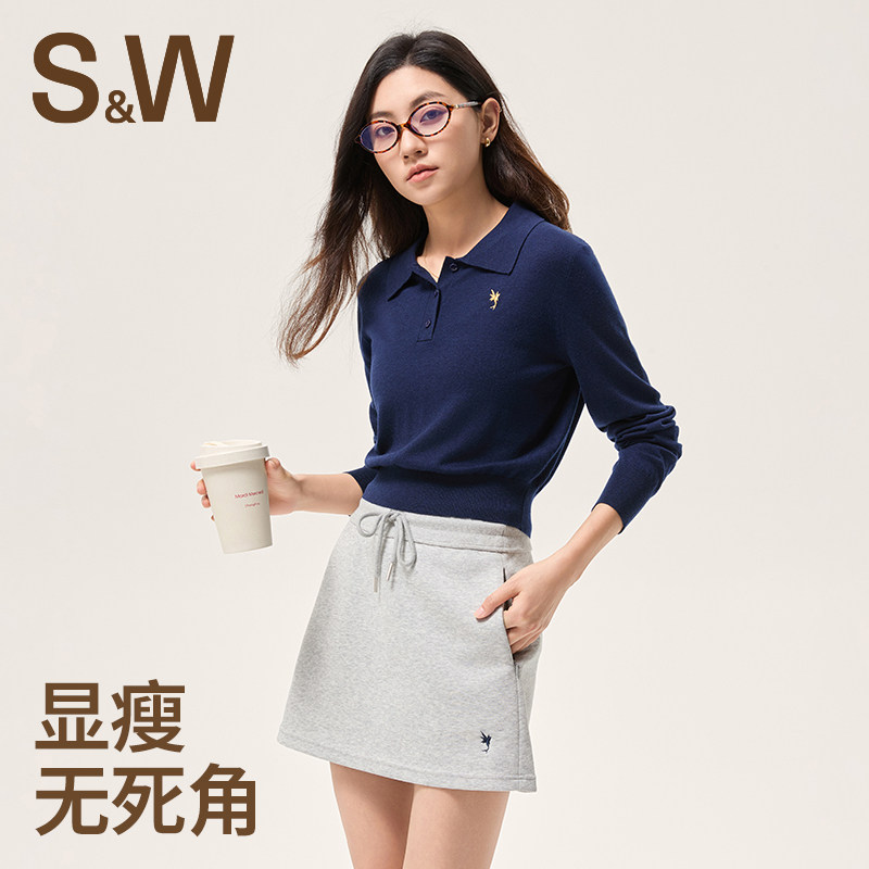 推荐理由:SW速惟运动毛衣女翻领纯色针织衫跑步健身训练瑜伽上衣透气长袖衫
