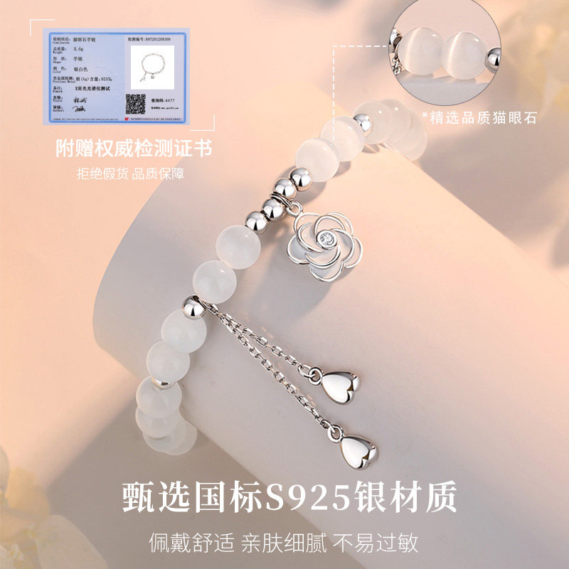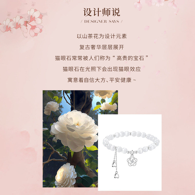 推荐理由:山茶花猫眼石纯银手链女2025年新款水晶手串轻奢小众精致生日礼物