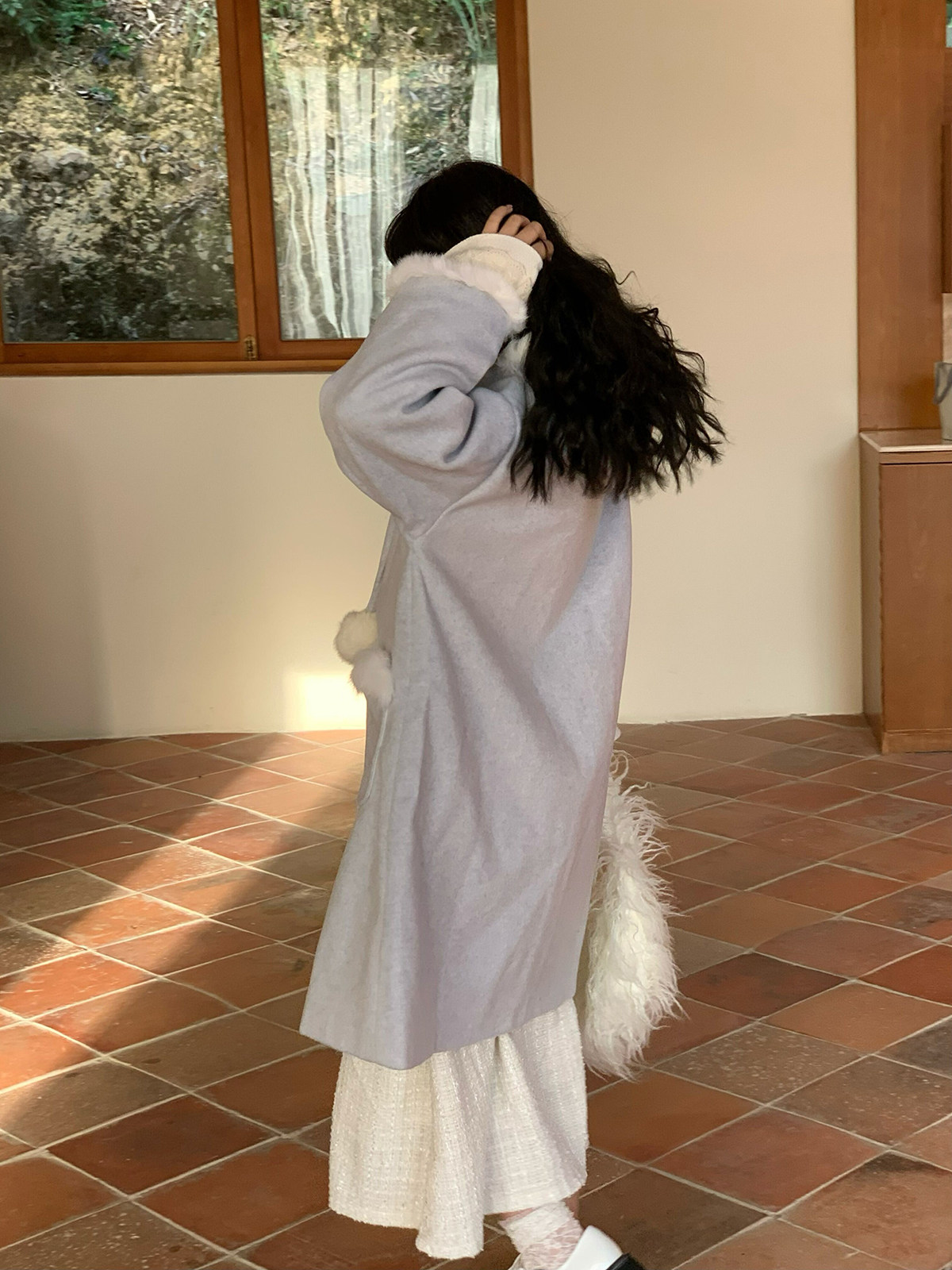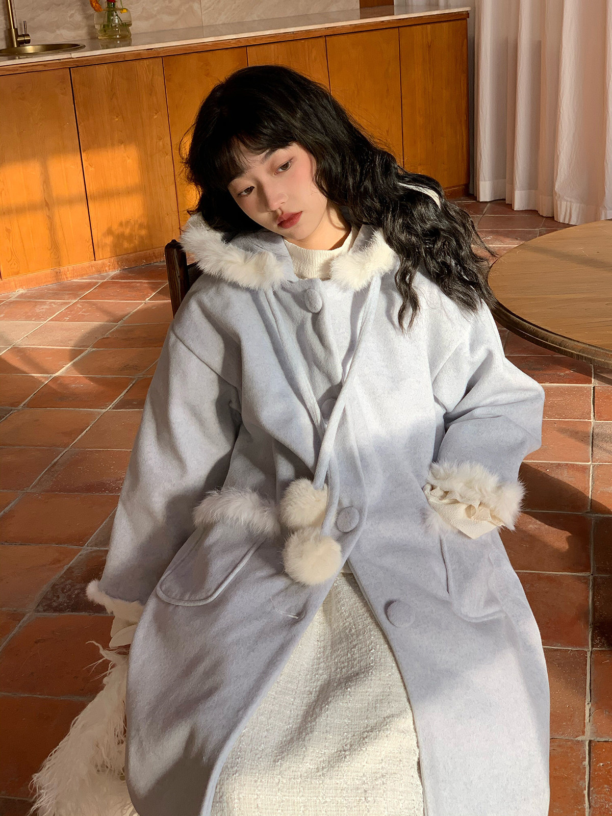 推荐理由:蛋包饭餐厅【冬日集会】毛绒连帽呢子大衣女秋冬款小个子毛呢外套