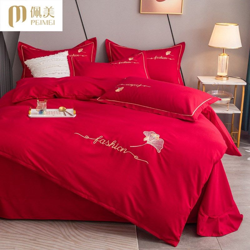 新款加厚磨毛大红色被套件单件结婚房喜庆刺绣花被罩2米加大2.2