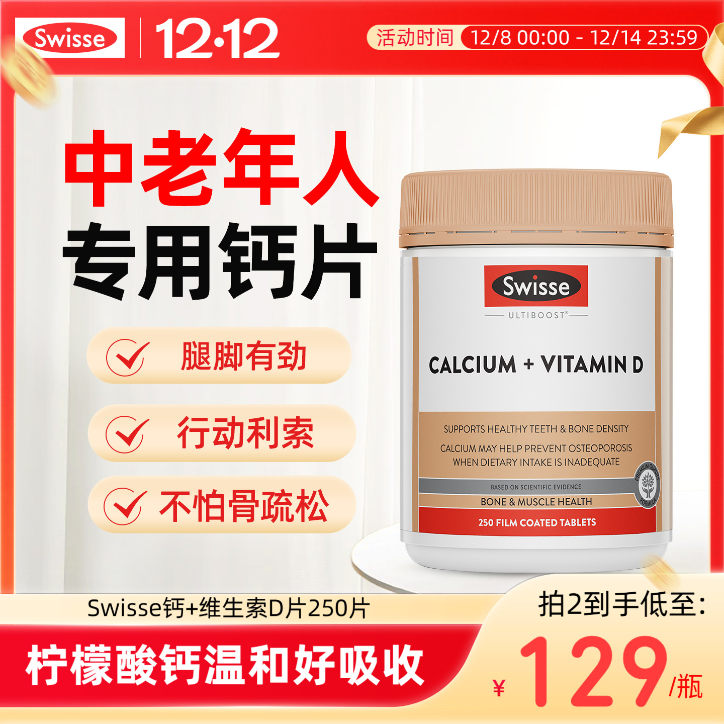 Swisse斯维诗钙片中老年人腰腿抽筋老年补钙骨质疏松保健官方正品