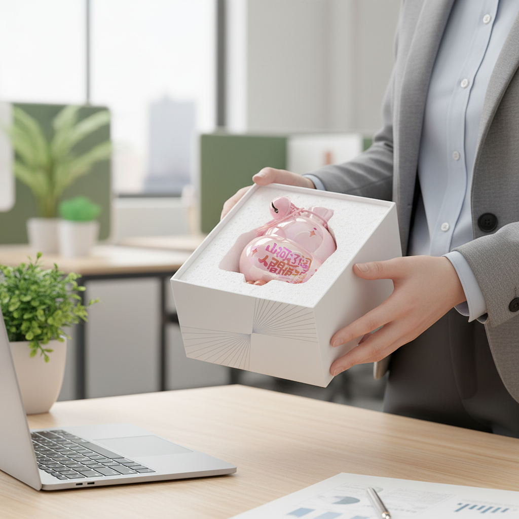 创意粉色小猪树脂摆件桌面装饰简约现代小众礼品礼盒装